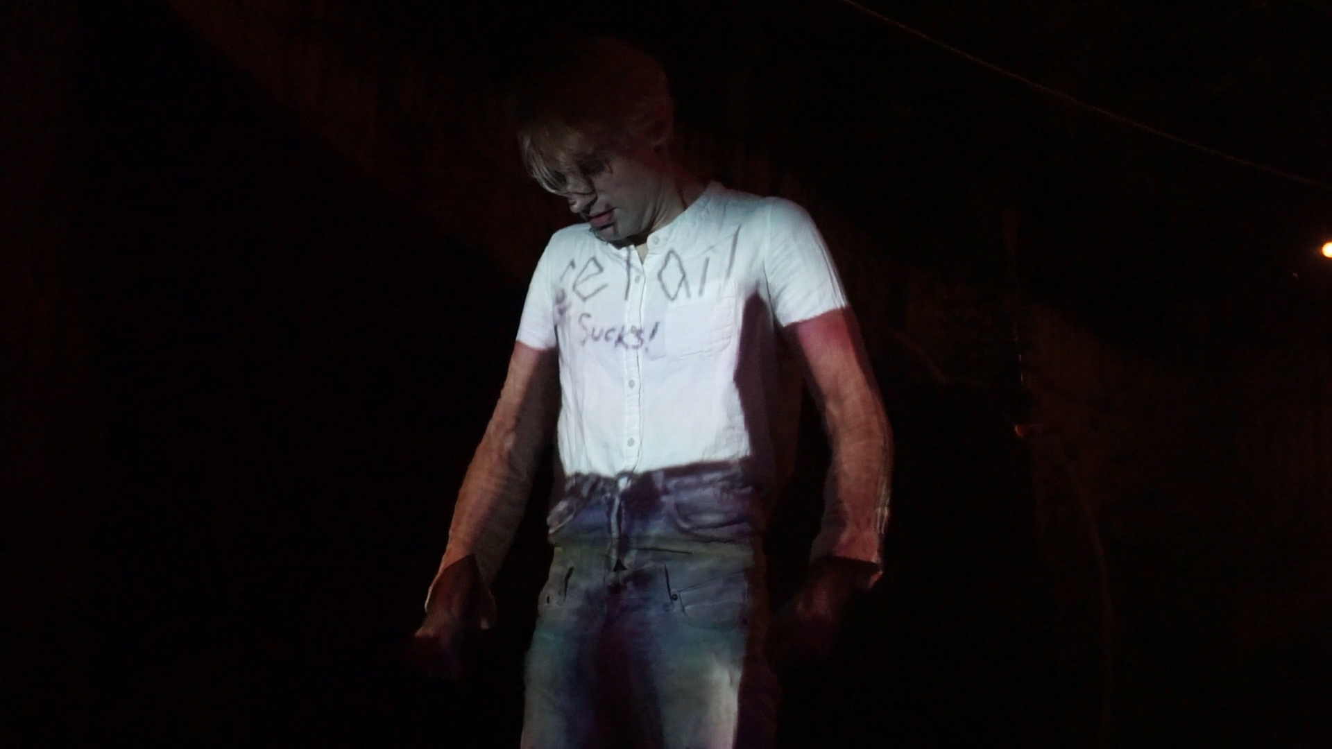 In this performance of the piece (which can be performed a number of different ways), Paige Johnson-Brown improvised live counterpoint to Swan's new-agey psychobabble in a continuous stream-consciousness dialogue questioning how some of Swan's points might conceivably be used in a different context to defend abusers. I am the stoic-paper doll statue, representing at various times, my own projections and various personae, and yet another counterpoint to Paige's and Teal Swan's projections. I'm very proud of how it came out, so I'm pleased to leave you with video documenting the entire 34 minute performance embedded below. Enjoy!