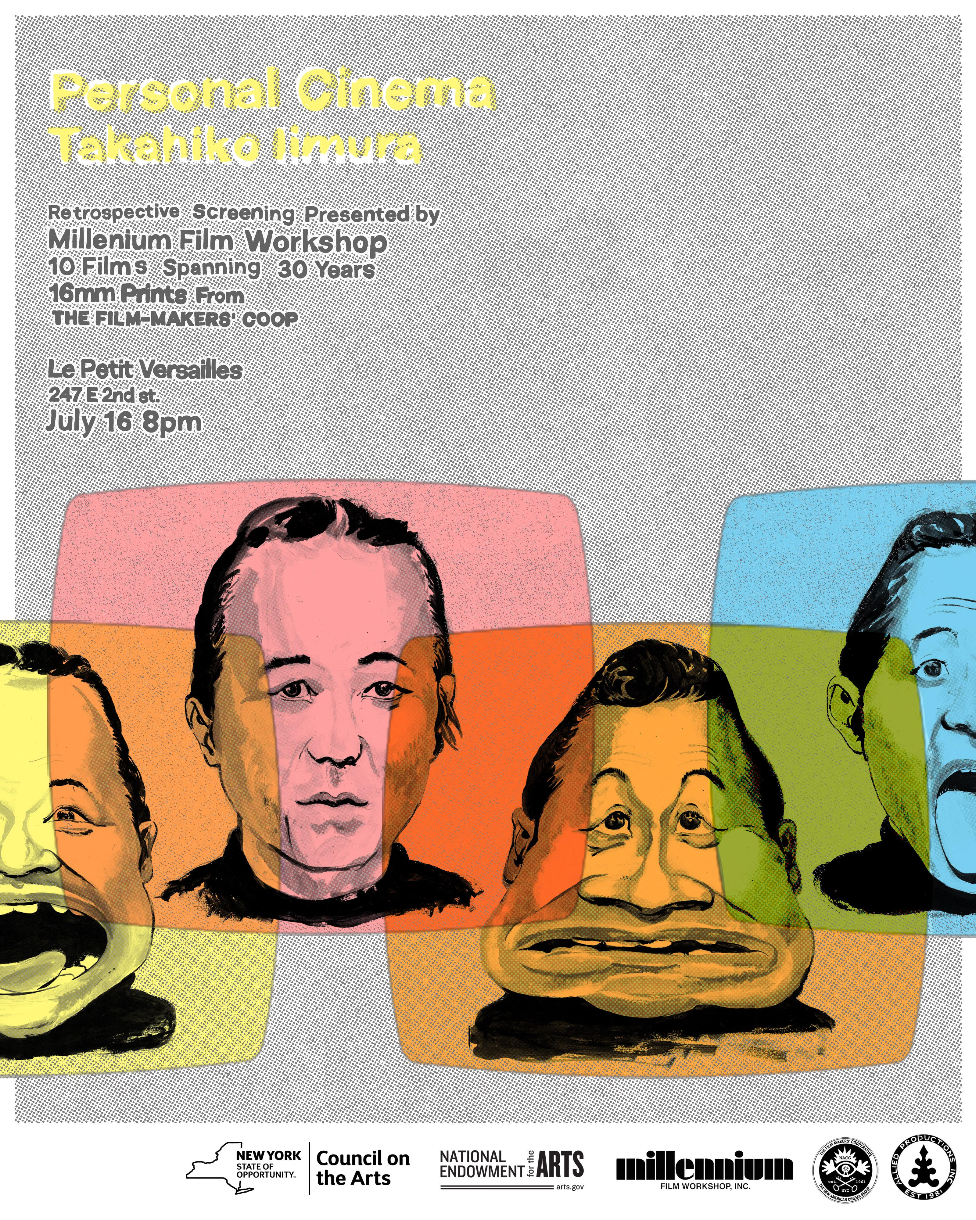I've also been spearheading some robust and ambitious programming with Millennium Film Workshop-We're launching our streaming channel on our website tonight with a 24 hour livestream of material screened at Joey Huertas' 'HIJACK!' film club between 2017 and 2019--I have some work in this program, including a Cinestesia performance, and also the complete film THE SHOPLiFTERS will show at some point. (That film premiered at Hijack in 2018). I'm also excited to share the poster for a screening event which will take place on July 16th, that I've been working extremely hard the last few months to put together and is finally coming together. This is aretrspective screening of the works of Japanese experimental filmmaker Takahiko Iimura. We'll be showing all 16mm prints of 10 of his films, and a 20 minute zoom interview I was privileged to conduct with the artist. Brendan designed the poster and it's some of his best work ever: