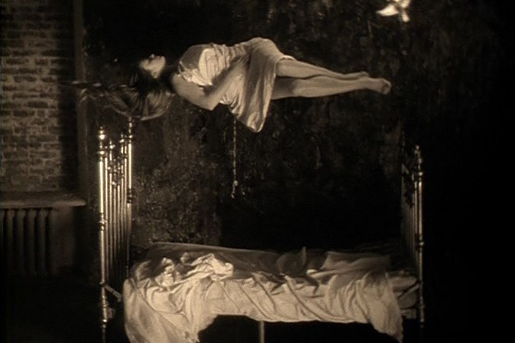 The last still from this film guide I want to discuss features in a film I just saw for the first time this week, Andrei Tarkovsky's 'Mirror' (Зеркало) (Russian titles are fun). This was an instance where hte still I remember from this book translated to the moment in the film in a transcendent way that both recalled the feeling I felt when I initially saw the still and brought with it a host of other associations. To be sure, 'Mirror' is unique for its dreaminess even amongst the dreamy filmography of Tarkovsky's work. It'd be useless and sort of incorrect to try and excavate direct meaning from all of the imagery from this film, which in its entirety is a meditation on personal history, inherited familial trauma, within and without Russian history, and inherited cultural-historical trauma. The book showed the above frame, the woman levitating above her bed in one of the film's many sepiatone dream sequences woven inextricably into its storytelling. In my teenage mind I was looking at something which obviously recalled 'The Exorcist' but this was incongruous with the vague description of the film the book offered (I can't really remember what it said but it certainly did not characterize it as a horror film). I hadn't seen any Tarkovsky films and in my imagination he was sort of the Soviet Union's answer to Stanley Kubrick, knowing that 'Solaris' existed and figuring that might be similar to '2001: A Space Odyssey'. I've now seen all of his movies, and know that while often people do tend to characterize him as such, their interests as filmmakers are not quite similar (though they are both big-idea perfectionist camera gliders).