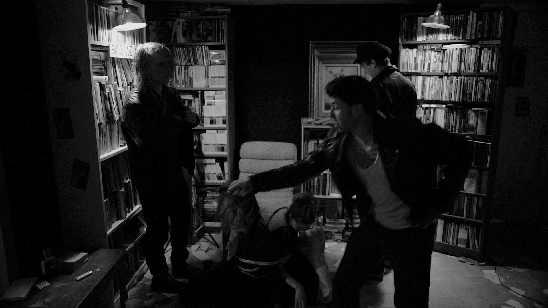 While developing THEY READ BY NIGHT! I kept trying to write a conventional screenplay for it and was consistently disappointed in everything I produced for it. I knew that I wanted this cast of characters who were hyper-literate hooligans, and so I kept looking to A CLOCKWORK ORANGE for inspiration, and found myself writing pages and pages of obnoxious stylized dialogue that all sounded oh-so-clever and not at all what I was looking for. I sought out Warhol's VINYL, knowing it was based on the same material (the novel by Anthony Burgess), and that Andy's aesthetic couldn't be less like Kubrick's. the film takes place in one crowded room in two unedited 33 minute 16mm reels, with Gerard Malanga as Alex, professing his juvenile delinquent's manifesto in soliloquoy while S&M scenes real and fake are enacted all around him, with him soon playing the sub. Incredibly, if you're looking for it, you can actually follow the story and understand that the gonzo theatre being played out before you is indeed 'A Clockwork Orange' but in its execution, the film also feels like so much more--a vibe encapsulated, a documentary of a real 'scene', and personas frozen in time - most famously, Edie Sedgwick seated nearby smoking dispassionately. This became my new template for the film--dialogue would be improvised based on threadbare guidelines, or read out loud from cue cards hidden in books (a technique borrowed from another great Edie-Starring Warhol film, KITCHEN) and plot and editing would take a backseat to the natural personality of the actors, turned superstars by the grace of the camera lens.